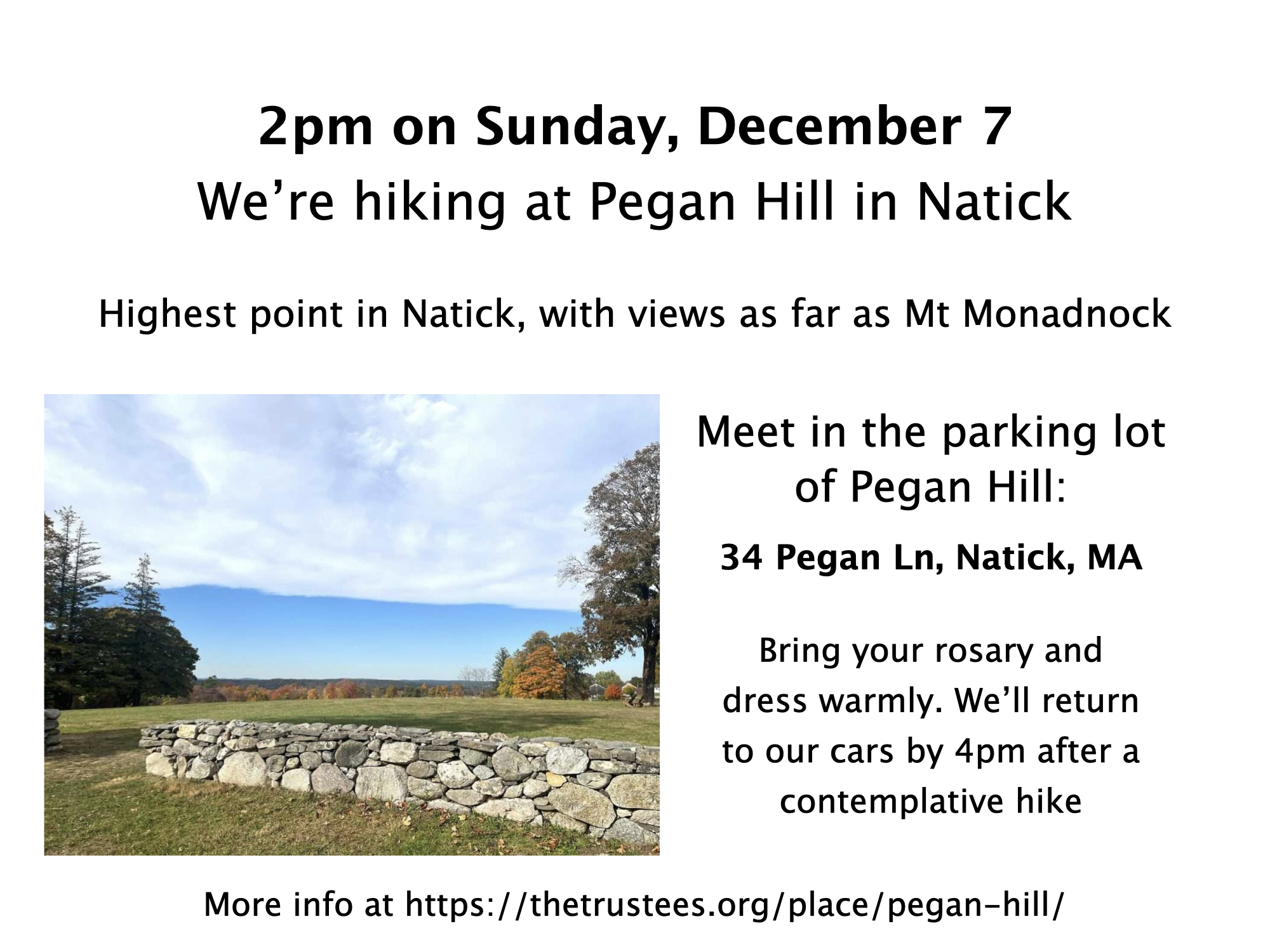 Sunday, DEC 7: Hike at Pegan Hill, Natick