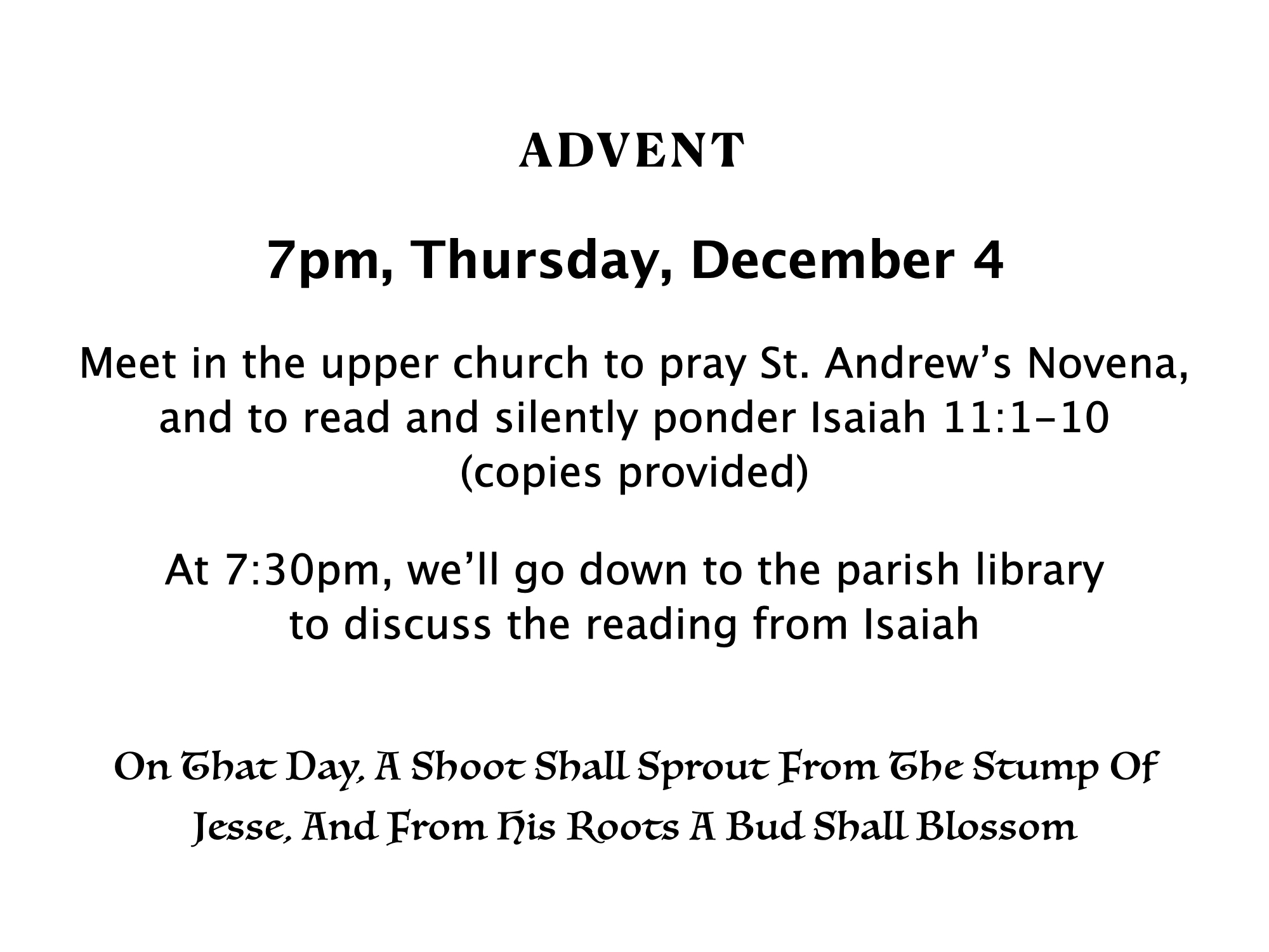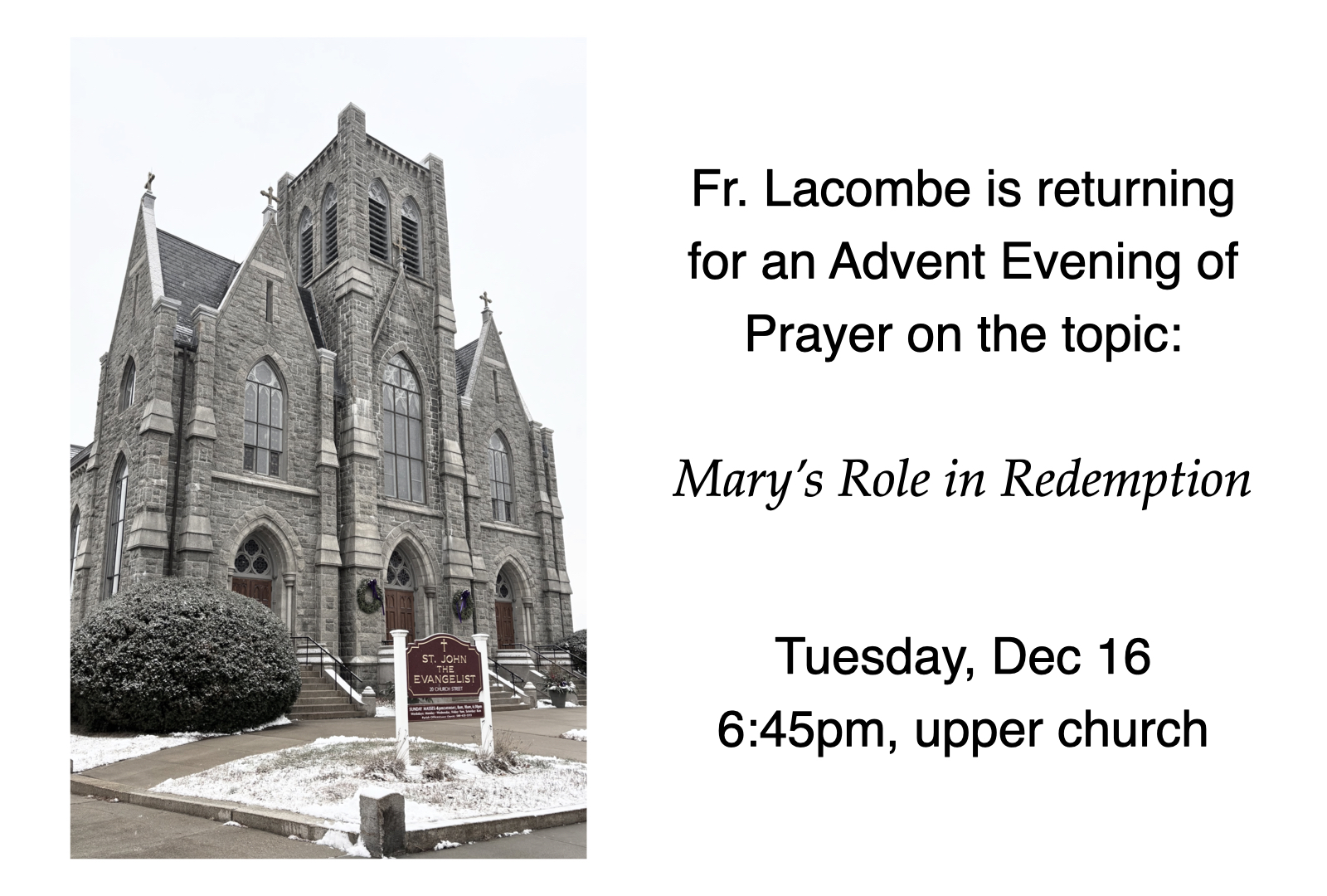 6:45pm on Tuesday, DEC 16: Fr. Lacombe’s Advent talk